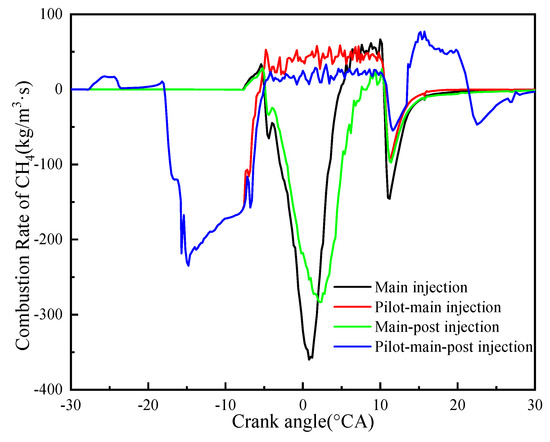 CH4 combustion rate with different injection strategies.