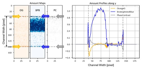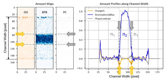 - Optical refraction at dynamic refractive index changes at the boundary of the two fluid samples, with different refractive indices. Here, one has to note that adding a dye to a buffer changes its refractive index.