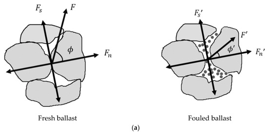 where is the shear resistance and is the normal contact force. A higher interparticle friction coefficient μ implies higher shear resistance and, hence, higher resistance to shear slip. This means that the overall stiffness and shear strength of the ballast assembly will increase [27].