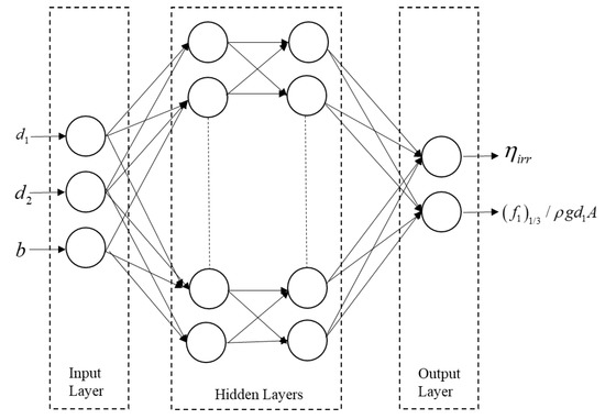 An ANN regression model based on a feedforward neural network is used to predict the optimal design features of the U-OWC. The advantage of an ANN model lies in the fact that it is capable of learning the strong nonlinear relationship between the input and output features. Before training the ANN model, we need to optimize the hyperparameters [25] of the model: the number of hidden layers, learning rate, batch size, and regularization parameter. To obtain these optimal hyperparameters, an exhaustive search algorithm is used with the ANN regression model. The best hyperparameters for each energy period are listed in Table 1.