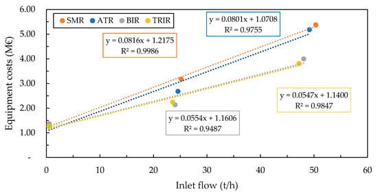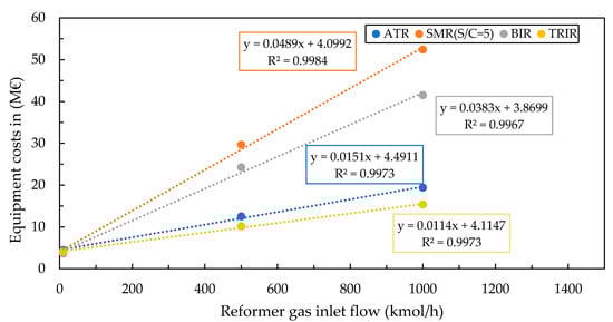Purchase equipment costs of different reforming systems.