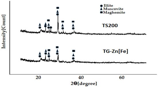 X-ray diffractogram of dry soil (TS200) and the dry soil–BPMC-H2O2-MFe2O4/CNS [TG-Zn(Fe)] mixture.