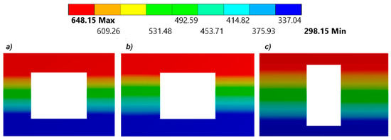 Temperature distribution of rectangular models: (a) Model A, (b) Model B, (c) Model C.
