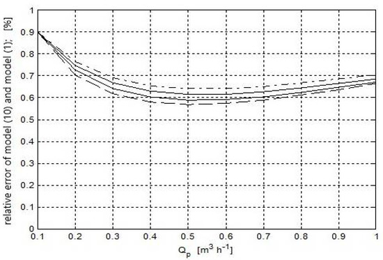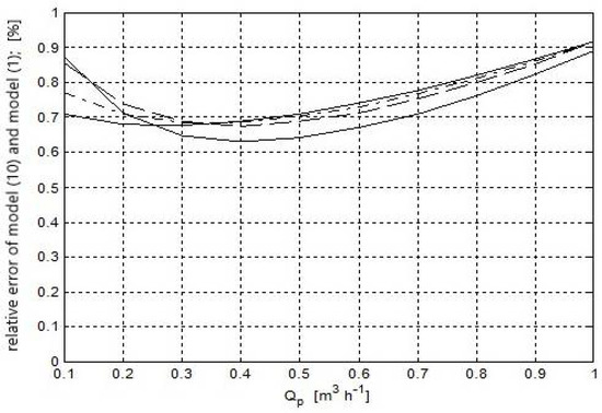 Figure 1 and Figure 2 show the relative errors of the drops, calculated on the basis of model (10), in relation to the drops calculated using model (1). The results confirm that the models are compatible.