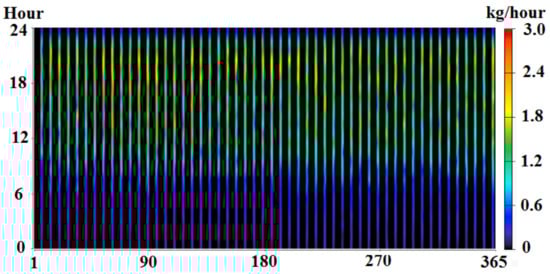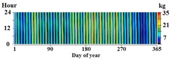 - : the total amount of hydrogen gained at the output of the electrolyzer in kg.
