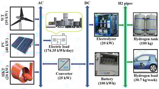 - Abdin, Z.; Mérida, W. Hybrid Energy Systems for Off-Grid Power Supply and Hydrogen Production based on Renewable Energy: A Techno-Economic Analysis. Energy Convers. Manag. 2019, 196, 1068–1079. [Google Scholar] [CrossRef]