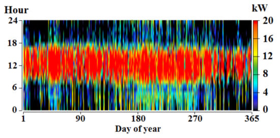 | PV system | 40 (kW) | 25 | 1300 ($/kW) | 1300 ($/kW) | 20 ($/kW/yr) | Electrical bus: AC Derating (reduction) factor: 96% Temperature coefficient: −0.41% operating temperature: 45 Efficiency at standard test conditions: 17.3% Ground reflectance: 20% Tracking system: no tacking |