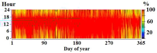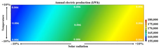- : albedo in %, indicating the portion of solar radiation striking the ground and then reflecting. This value may change from 20% to 70% according to the surrounding area of the PV systems.