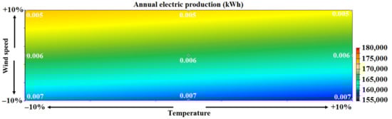 - : the PV nominal cell temperature, denoting the surface temperature that the PV may reach when exposed to a condition under which solar radiation, ambient temperature, and wind velocity are 0.8 kW/m2, 20 , 1 m/s, respectively,