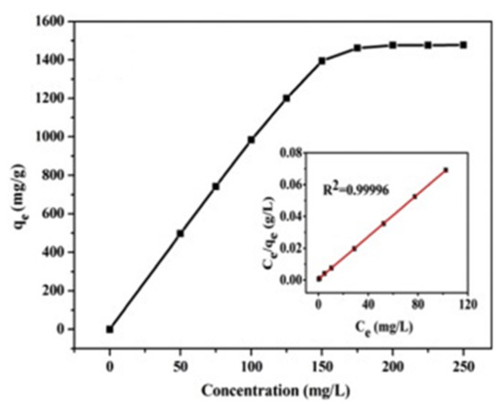 Langmuir fit for lead removal using Fe@MgO nanocomposites. Reproduced with permission from [118].
