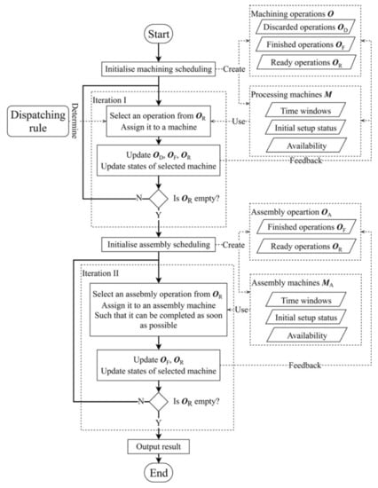 - Zhang, S.; Wang, S. Flexible assembly job-shop scheduling with sequence-dependent setup times and part sharing in a dynamic environment: Constraint programming model, mixed-integer programming model, and dispatching rules. IEEE Trans. Eng. Manag. 2018, 65, 487–504. [Google Scholar] [CrossRef]