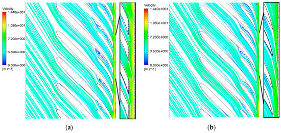 Velocity streamlines of (a) the prototype; (b) Model C.