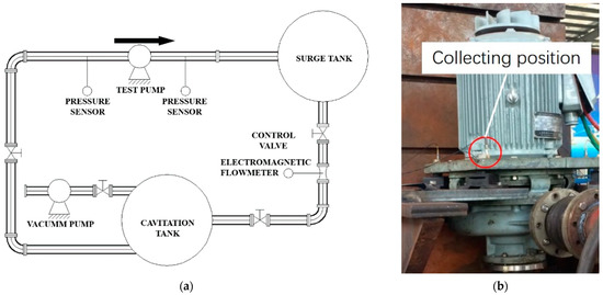 Schematic of (a) the pump test rig; (b) the vibration acceleration sensor.