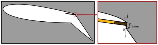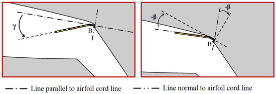 Figure 3 and Figure 4 show the installation conditions of the fluidic oscillators. The fluidic oscillator is placed at B-B’ plane as shown in Figure 3, which is located 7 mm downstream of 70% chord position from the leading edge of the airfoil. The B-B’ plane is always normal to the centerline of the oscillator outlet and, the zero pitch angle (β = 0) is defined as the condition where the oscillator outlet is mounted parallel to the chord line of the airfoil. Figure 4 shows the installation conditions of the fluidic oscillators. In this figure, the symbol γ indicates the bending angle of the outlet parts of the oscillators, and β indicates the injection pitch angle of the oscillators.