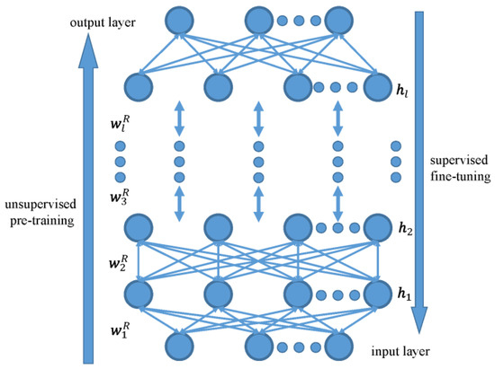 The deep belief network (DBN) achieves the approximation of complex functions through unsupervised layer-by-layer pre-training and supervised backpropagation fine-tuning [98,99]. In the process of unsupervised pre-training, the auxiliary variables are subjected to nonlinear mapping through the stacked restricted Boltzmann machine to extract the abstract features of the training samples. In the process of supervised backpropagation fine-tuning, the weights are fine-tuning through the backpropagation of the supervised signal to realize the further adjustment and optimization of the weights of the network.