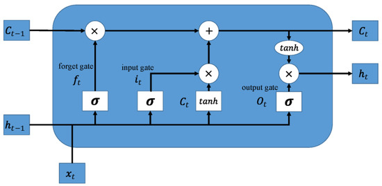 Additionally, the hydrolysis reaction process is slow in the anaerobic digestion process, resulting in a certain time lag between the real-time monitoring variables of the acid-generating tank and the real-time monitoring variables of the methane generating tank. This suggests that the target variable is affected by the auxiliary variable in the current state, the changes in the operating conditions, and production conditions at the last moment, as well as the target variable in the current state. Therefore, Mccormick proposed a dynamic soft sensor based on long short-term memory (LSTM) network to predict biogas yield [105]. The LSTM structure is exhibited in Figure 6.