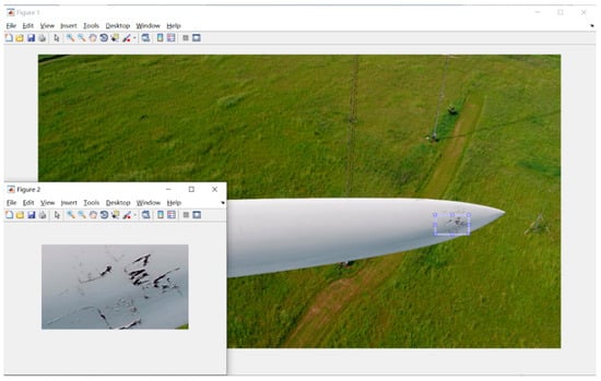 However, the actual collected images also contained background interference, large blade defects, small blade defects that were not easy to observe, and other factors that were not conducive to the study. Therefore, the defective part should be captured, and the blade part should be ignored for the convenience of research and use. Therefore, the effective part of the image was intercepted using the IMcrop function in MATLAB [24]. A region of interest for extraction is shown in Figure 4.