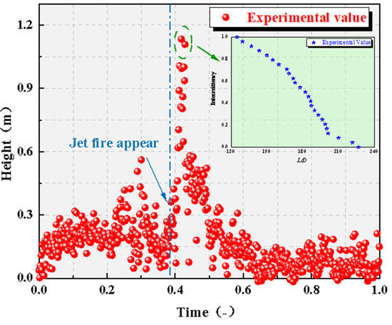 Flame height evolution of the jet fire (D = 0.4 m/d = 10 cm).