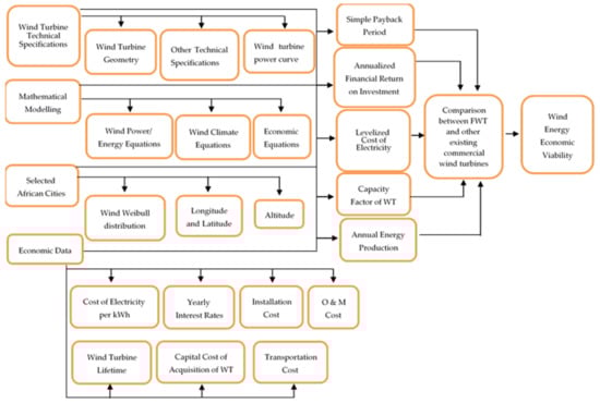 In this paper, Section 1 introduces the paper and explains the need for clean energy in comparison to fossil. It explains how wind energy has been widely used as a source of power generation and discusses the reasons that wind energy is needed in the African energy mix, as well as potential for wind energy across the continent. Section 2 details the methodology and the framework used to develop the techno-economic model. Section 3 presents the African countries and cities selected as case studies, which represent the wind speed distribution available across the African continent. Section 4 introduces the mathematical modelling from both the technical and economic standpoints. Section 5 discusses the data used in the model, which consist of wind data, wind turbine specifications, and economic data. Section 6 introduces the techno-economic analysis procedure including its input and output variables, presents, discusses the results, and compares the FWT and some existing commercial wind turbines. Conclusion and recommendations are presented in Section 7.