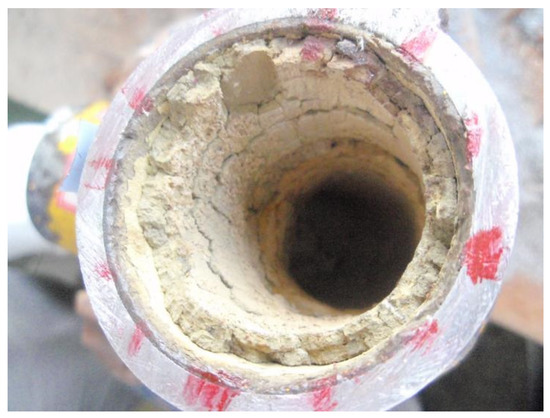 There is usually an even corrosion on the vessels and the pipelines under the condition of HF acid. The even corrosion produces a white corrosion product layer on the inner surfaces of the vessels or pipelines. This layer of corrosion product has a certain protective effect on the substrate. The degree of damage to the corrosion product layer varies with the operating conditions and operating environment. The corrosion rates change with the different damage degree of the corrosion product layer. As shown in Figure 2, the corrosion rate is low and the corrosion product layer is even. As shown in Figure 3, the degree of corrosion is serious and there are a large number of loose bubbles.