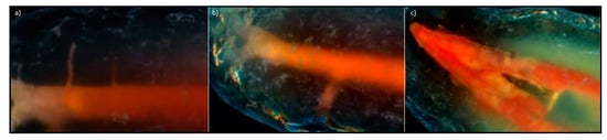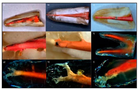 - Vogt, B.F.; Xavier, C.B.; Demarco, F.F.; Padilha, M.S. Dentin penetrability evaluation of three different dyes in root-end cavities filled with mineral trioxide aggregate (MTA). Braz. Oral Res. 2006, 20, 132–136. [Google Scholar] [CrossRef]