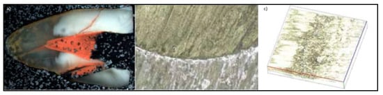Apart from the correct selection of the filling material, another important factor determining the success of endodontic treatment is the method of root canal preparation. The development of a root canal consists of removing the contents inside the root canal, disinfecting it, and giving it a shape to ensure the best hermetization of the root canal with the filling material. In endodontics, to prepare the dentin of the root canal for connection with the filling material, one can use the classical mechanical preparation methods and achieve disinfection by cutting the dentin with hand or rotary instruments, a laser, or ultrasound [102,103,104,105,106]. Tool wear or damage depends on the dentist’s experience [180] in using crown-down techniques to reduce the risk of dead pulp debris and cut dentin filings being forced past the apical opening [181,182]. In addition to the correct selection of the filling material, the obturation technique, and the method of root canal preparation, an important factor is selecting rinsing fluids and lubricants that are the most appropriate for the tools used. The dentist expects the proper manufacture of the tools they are sourcing, showing confidence in the tool producers. Various studies compared the test results of various endodontic tools [183]. In [70], a virtual analysis was performed, making it possible to narrow down the considerations in the practical verification of selected cases. For endodontic procedures, dentists very often use corrosion-resistant steel hand and rotary tools. The risk of breaking tools made of corrosion-resistant steels is significant due to the lack of flexibility of the tools and the resulting lack of adjustment of the tools to the natural curvature of the root canal in many clinical situations [181].