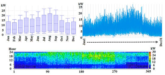 Mesr village, also locally called Mesr desert, is located in the province of Isfahan and is surrounded by the Great Salt Desert. This remote area is situated at coordinates 34°04′ N and 54°48′ E, with an altitude of rough 800 m above the sea level []. According to the latest population and housing census conducted in 2016, the village has 41 households with 183 population []. By virtue of Mesr’s location, many national and international tourists visit this place every year. For this, in addition to the number of personal houses, there are a dozen traditional hotels to accommodate visitors, a healthcare center, a mosque, and a small school. After collecting the information about electricity demand from Isfahan Province Electricity Distribution Company, the daily average electricity load would be approximately 366 kWh. The reason why this village consumes this amount of energy is that the number of tourists visiting this touristy rustic area is high in several months of the year. Analyzing the figures and the common electricity-consuming devices, almost 163 kWh/d of electricity would be used for heating equipment, such as space heating, water heating, and cooking. The rest, which is 203 kWh/d, would be needed by other equipment and appliances, such as air conditioning, fan, bulbs, ironing, television, washing machine, dish washer, refrigerator, etc. Thus, two types of load, electric load and thermal load, are assumed in the proposed models.