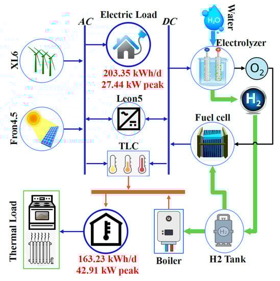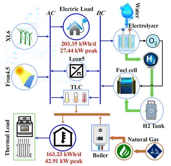 The key economic criterion via which HOMER proposes optimal sizing of HRE systems and prioritizes different configurations is . The formula to compute reads as Equation (1) [].