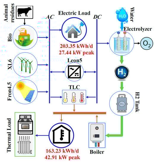 - Samy, M.M.; Elkhouly, H.I.; Barakat, S. Multi-objective optimization of hybrid renewable energy system based on biomass and fuel cells. Int. J. Energy Res. 2020, 45, 8214–8230. [Google Scholar] [CrossRef]