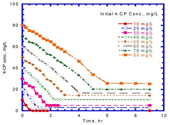 2.2. Kinetic Model for 4-CP in Batch Reactor