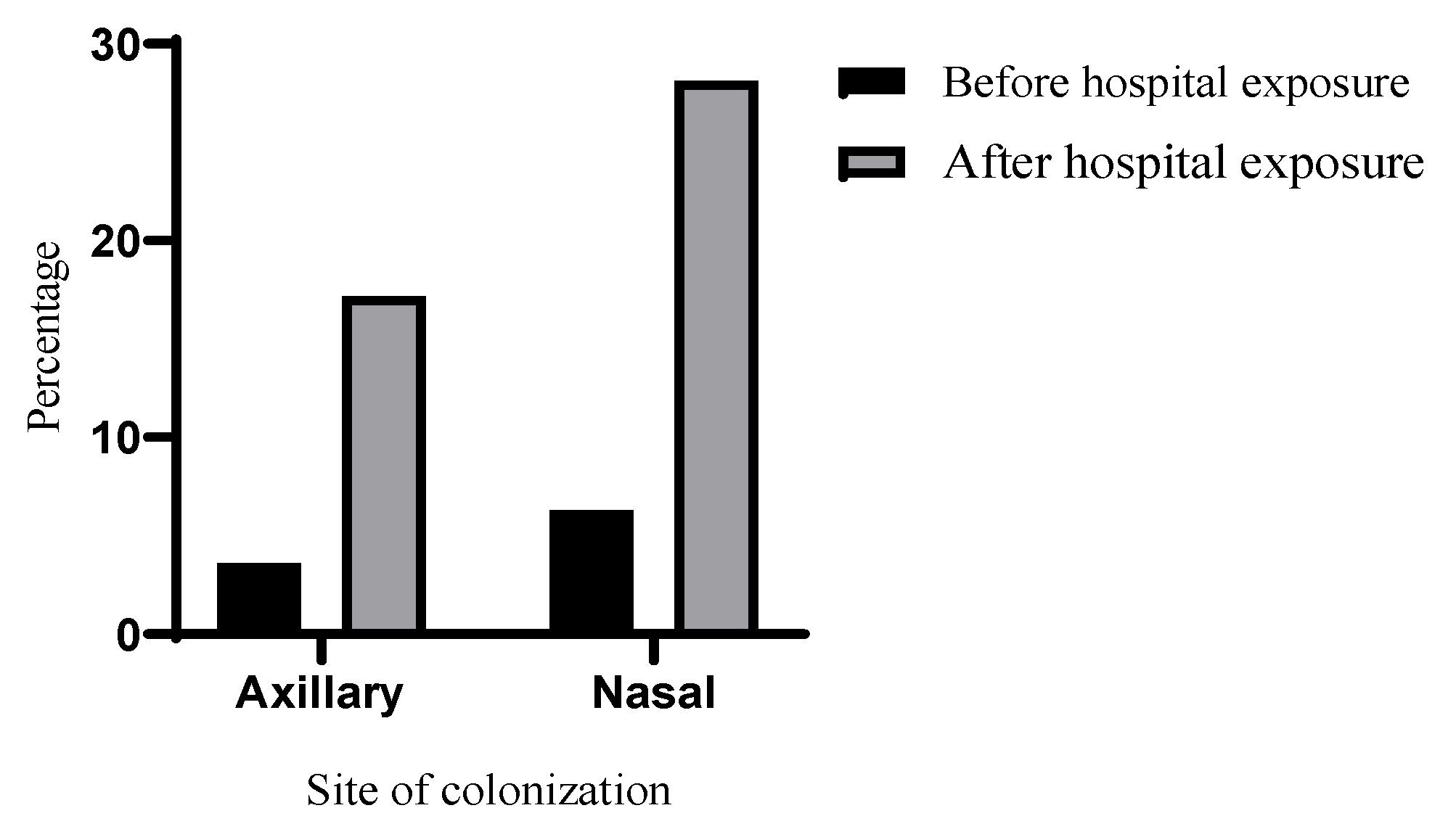 - Carmona-Torre, F.; Torrellas, B.; Rua, M.; Yuste, J.R. Staphylococcus aureus nasal carriage among medical students. Lancet Infect Dis 2017, 17, 477–479. [Google Scholar] [CrossRef]