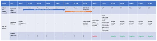 Patient timeline, from exposure to viral clearance – first case of SARS-CoV-2 in Romania.