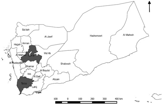 Cities where the two study hospitals are located, Taiz and Sana’a, Yemen.