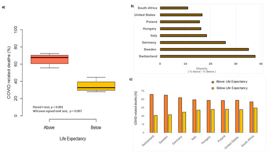 Methods: Through seven months of the 2020 COVID-19 pandemic, an association between life expectancy and COVID-19 related deaths was assessed. The reported age of those suffering from COVID-19-related deaths was evaluated across eight countries (United States, Germany, Italy, Hungary, Poland, South Africa, Sweden, and Switzerland), and placed into binary categories depending on whether or not the death occurred above or below the country’s life expectancy.