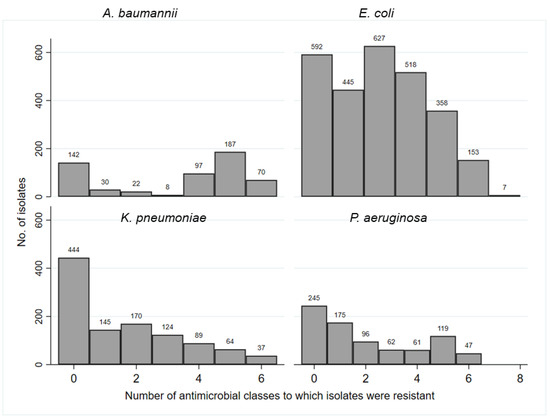 p < 0.05) higher compared to other specimen types. The most frequent MDR phenotypes in the four GNB organisms and across the different specimen types included three antimicrobial drug classes: penicillins, cephalosporins, and fluroquinolones.