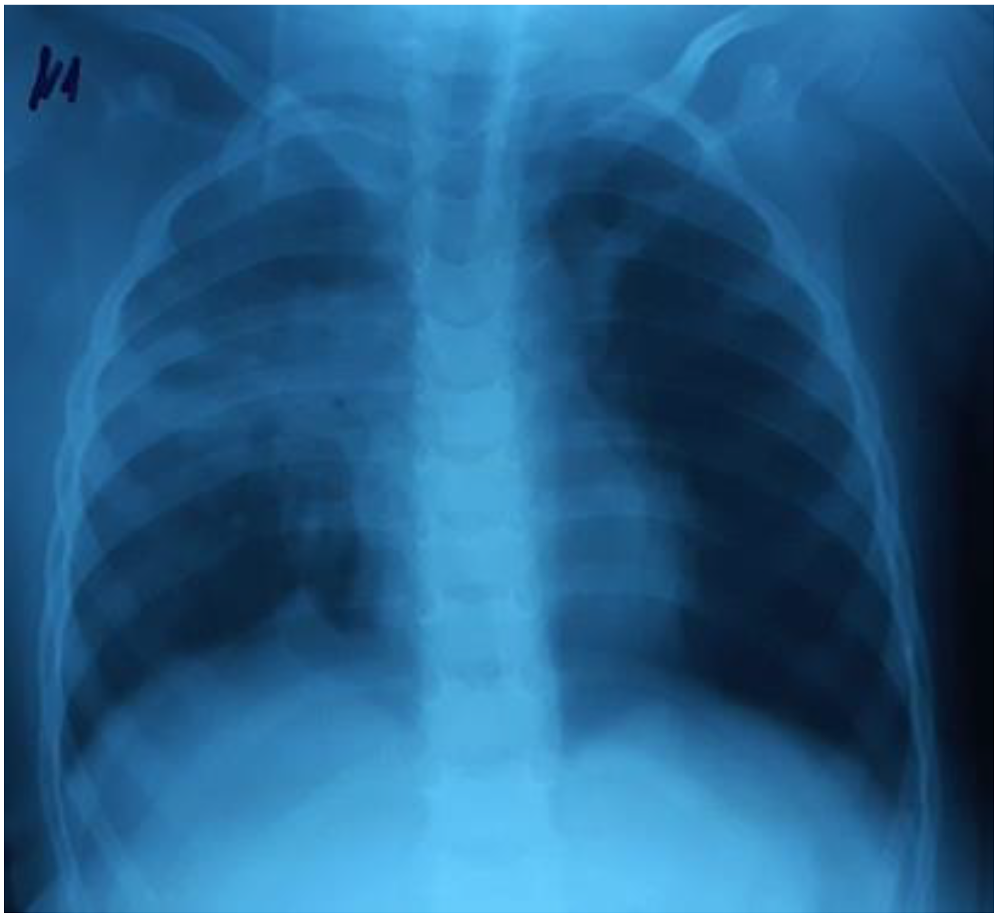 The child’s condition deteriorated within three days. The RF progressed; RR 35/min, SpO