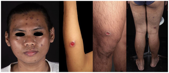 A 33-year-old man came to our dermato-venereology outpatient clinic with a chief complaint of ulcerative lesions on the face, trunk, arms, palms, and legs for the past two months. Two weeks prior, the patient had presented high fever, chills, and loss of appetite. He reported history of sexual intercourse with more than one male partner and had a history of being sexually assaulted when he was five years old.