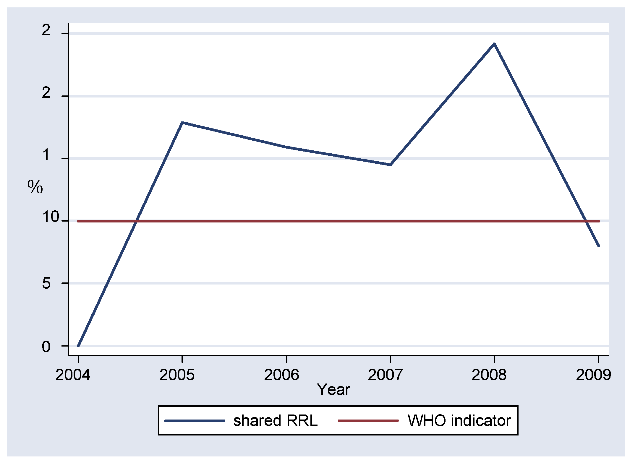 Overall, more than 10% of all specimens tested in the laboratory were sent to the RRL for confirmation, with the lowest value of 8.00% recorded in 2009 (