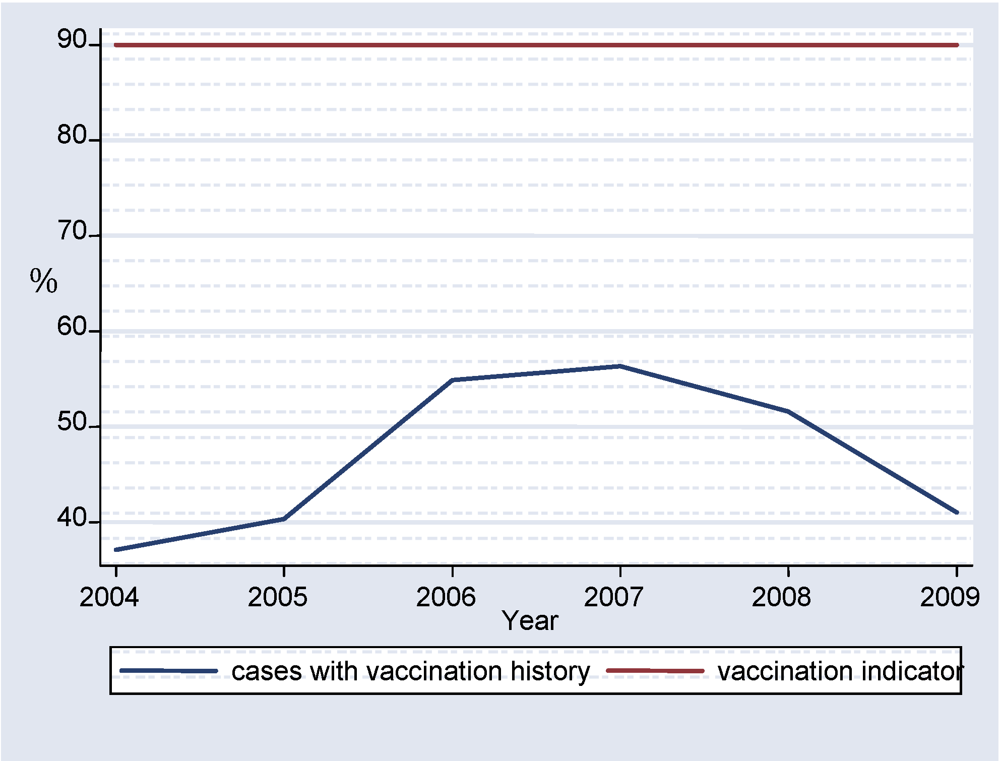 figure 6). It is difficult to tell whether this was a failure in immunization, or one in reporting. This does show however that the cases were not adequately investigated. Thorough investigation of cases is very important in elimination of measles as it ensures that transmission is interrupted. [