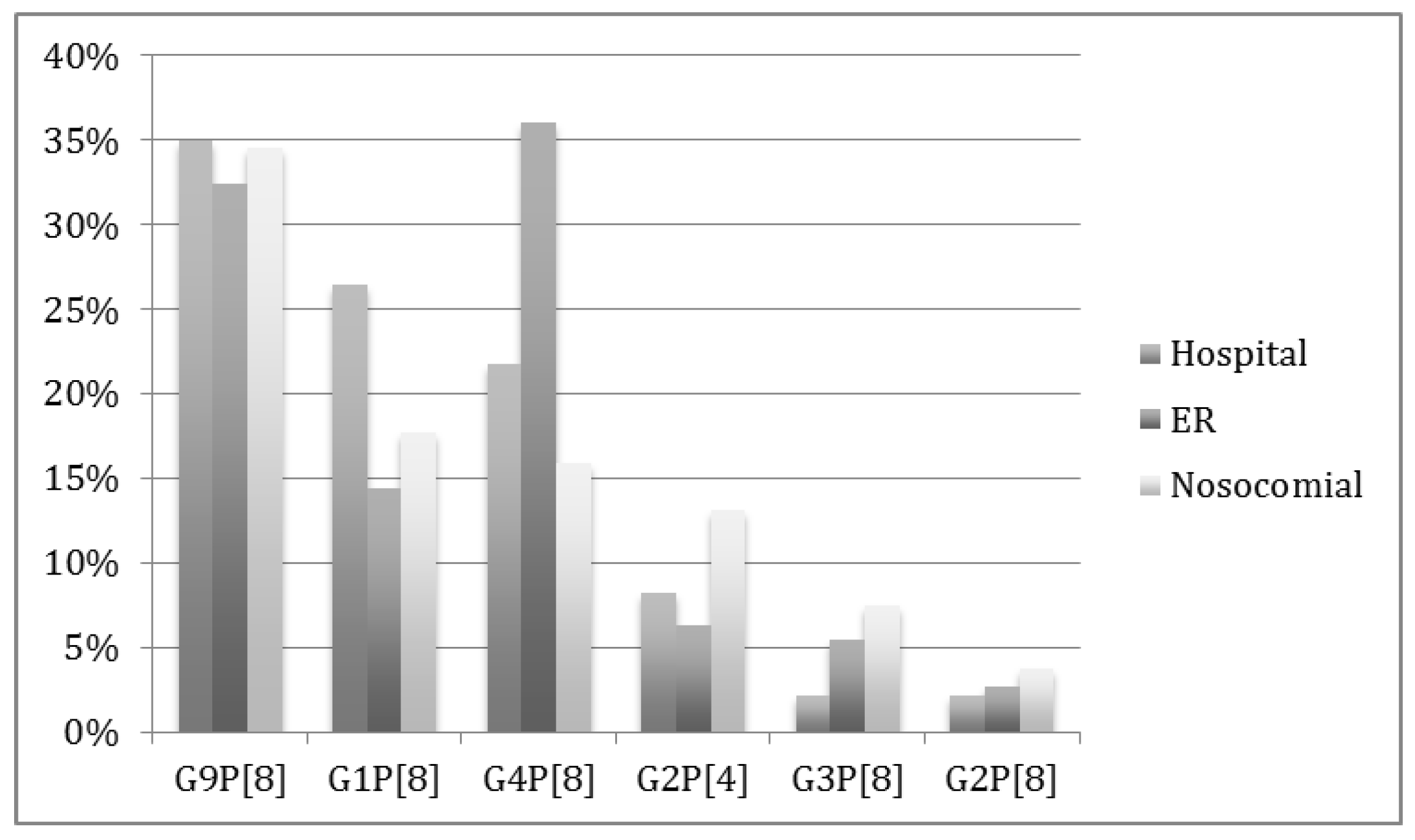 - Antunes, H.; Afonso, A.; Iturriza, M.; et al. G2P[4] the most prevalent rotavirus genotype in 2007 winter season in a European non-vaccinated population. J Clin Virol. 2009, 45, 76–78. [Google Scholar] [CrossRef]
