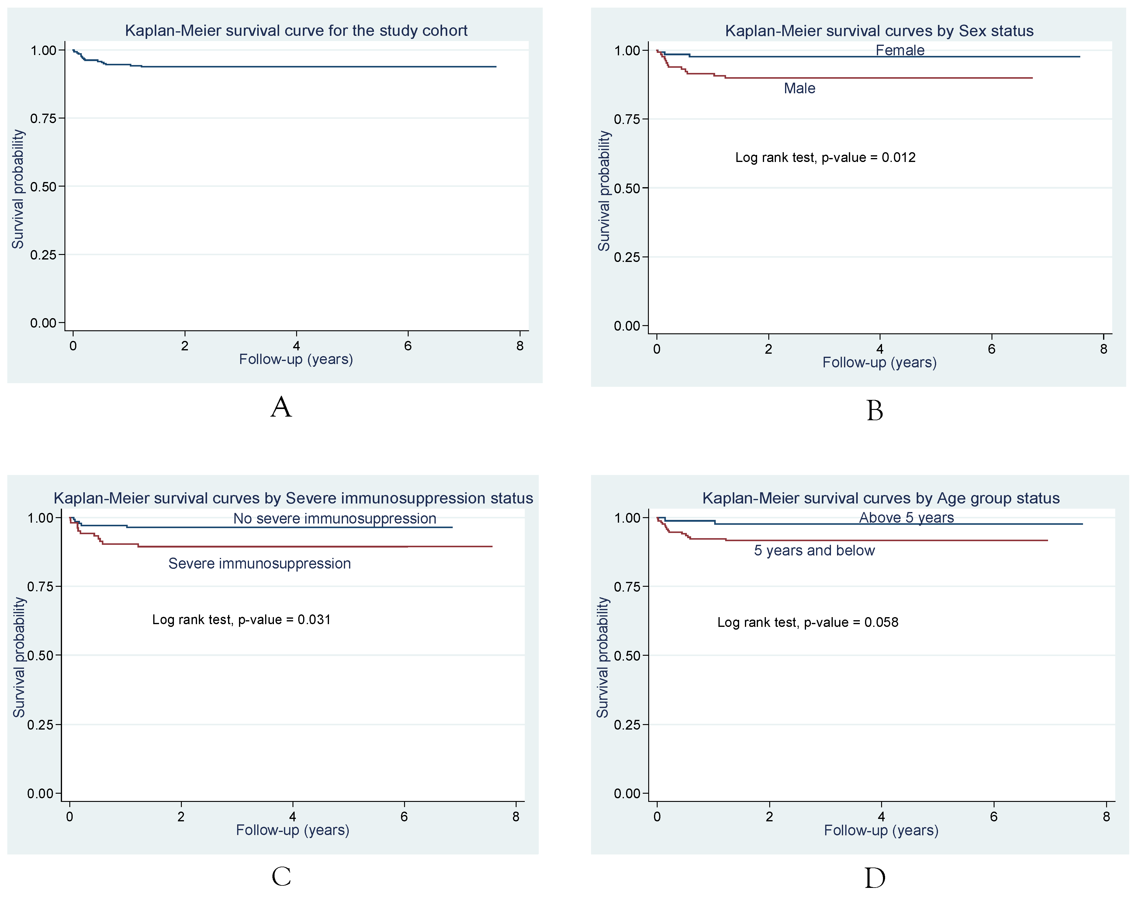 - Zanoni, B.C.; Phungula, T.; Zanoni, H.M.; France, H.; Feeney, M.E. Risk factors associated with increased mortality among HIV infected children initiating antiretroviral therapy (ART) in South Africa. PLoS ONE 2011, 6, e22706. [Google Scholar] [CrossRef] [PubMed]