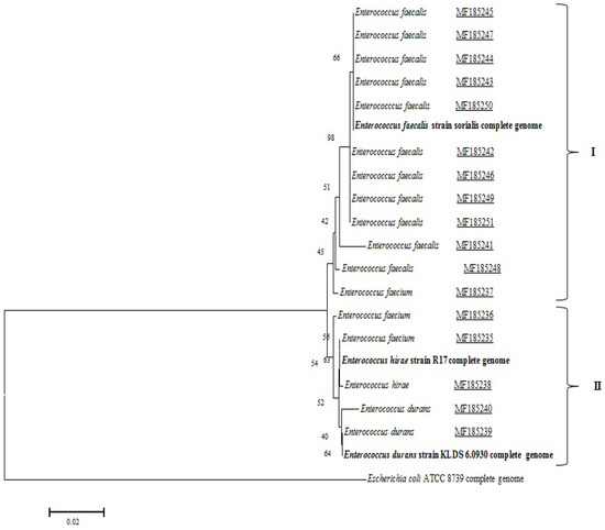 Enterococcus spp. using biochemical tests and 16S rRNA gene sequencing. The antimicrobial susceptibility of the isolates was determined.