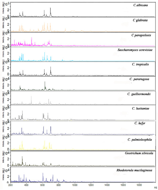 In this regard, MS (mass spectrometry), particularly MALDI-TOF MS (matrix-assisted laser desorption ionization-time of flight mass spectrometry), has been suggested as an effective alternative for microbial characterization thanks to the high efficiency of proteome profiling, allowing rapid and accurate ID of pathogenic microorganisms, including yeasts and filamentous fungi of medical interest [10,11,12]. One of the advantages of this technique is represented by the possibility to simultaneously and rapidly analyze complex proteins or peptide mixtures without a prior separation, or to analyze directly whole cells, with minimal sample preparation and negligible consumable costs [13,14,15].