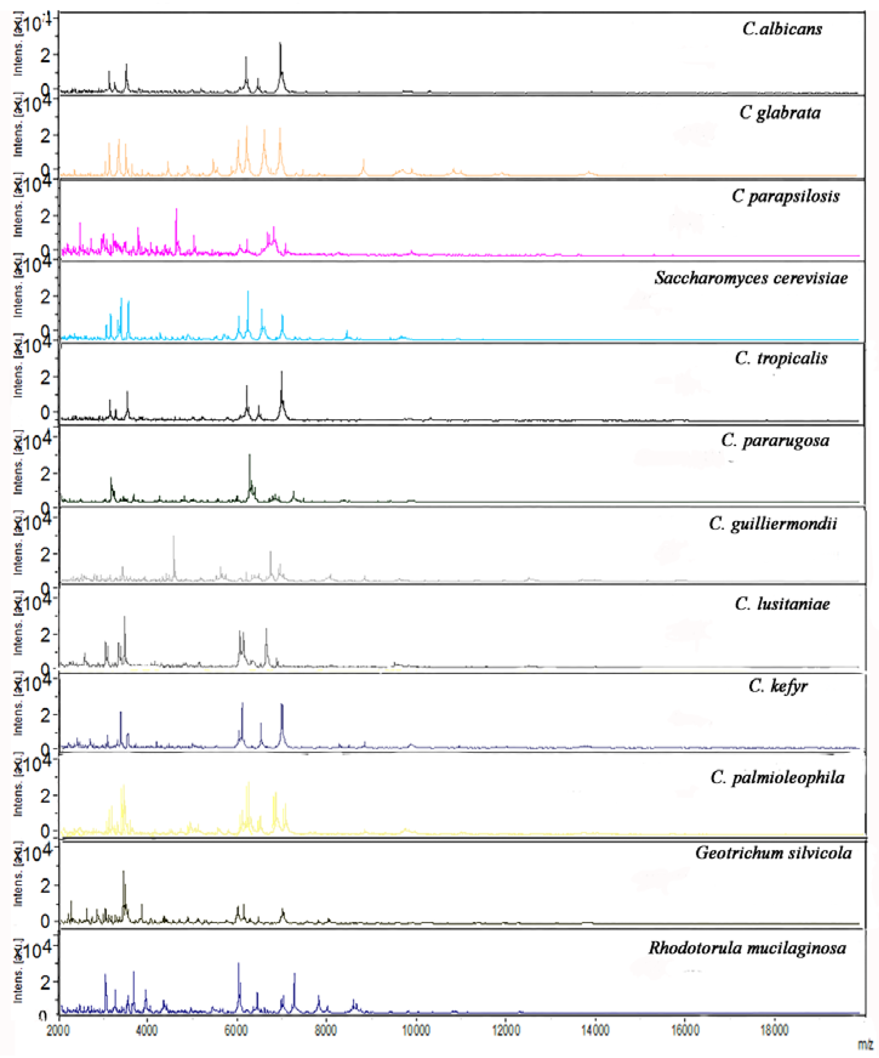 - Marinach-Patrice, C.; Fekkar, A.; Atanasova, R.; et al. Rapid species diagnosis for invasive candidiasis using mass spectrometry. PLoS One 2010, 5, e8862. [Google Scholar] [CrossRef] [PubMed]