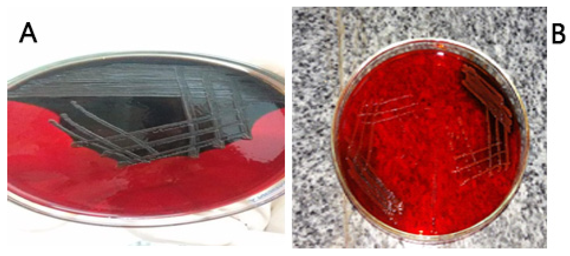 13], by the Congo red agar (CRA) medium. A positive result was indicated by black colonies, whereas nonproducing strains produced red colonies. Darkening of the colonies in the absence of a dry crystalline morphology indicated a moderate biofilm formation [