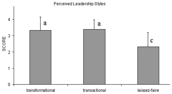 The questionnaire contained 39 items which were used to assesses the presence or absence of various leadership styles using a five points scale (0 = never; 1 = rarely; 2 = sometimes, 3 = often; 4 = very often). Data were analyzed with SPSS (version 14.01), normality tests (Shapiro Wilk test) were performed to confirm if data were normally distributed, and significance of differences was evaluated with one-way analysis of variance (ANOVA) followed by Tukey’s post-hoc tests.