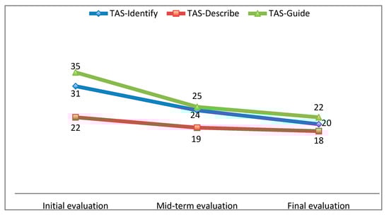 - Toronto’s Alexithymia Scale (TAS-20) [27], adapted to Spanish in the version of [28]. It is a psychometric instrument composed of 20 items arranged on a Likert-type scale ranging from 1 to 5 where 1 means Totally disagree and 5 means Totally agree. It consists of three factors: “Difficulty in identifying feelings” composed of items 1, 3, 6, 7, 9, 13, and 14 (example of item: “I have physical sensations that even doctors do not understand”); “Difficulty in describing feelings” composed of items 2, 4, 11, 12, and 17, (example of item: “I have physical sensations that even doctors do not understand”); and “Pattern of externally oriented thinking” composed of items 5, 8, 10, 15, 16, 18, 19, and 20, (example of item: “I prefer to let things happen, rather than analyze why they happened”). The test reached a Cronbach’s alpha consistency index of 0.078 [28].