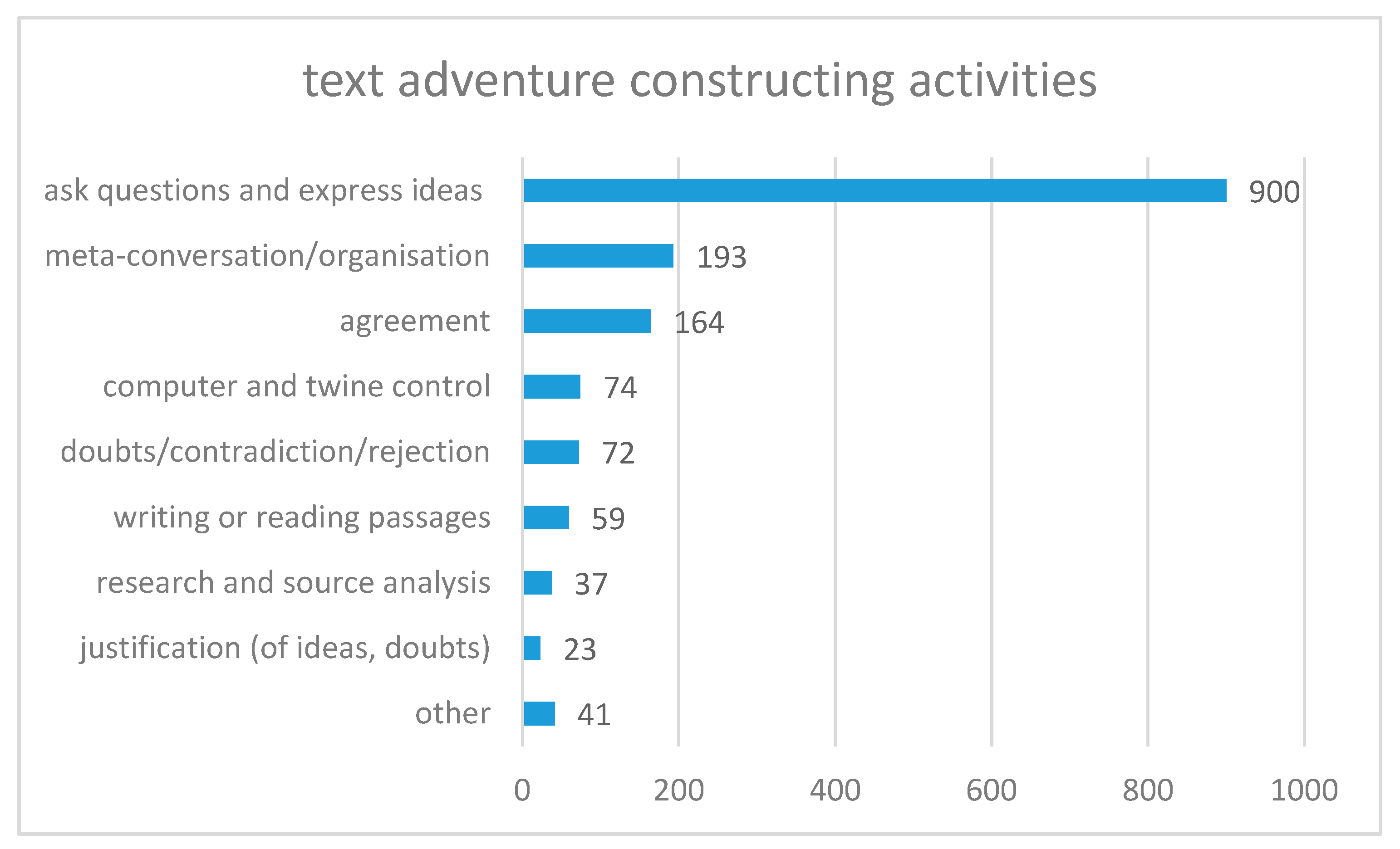 4.2.1. The Occurrence of Text Adventure Construction Activities According to Frequency
