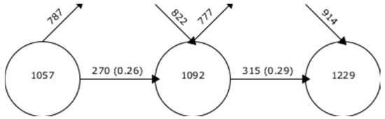 The evolution of keywords shows the number of keywords collected in a given period. In addition, it also shows the keywords that go out and come in a certain period. In this study, the level of keyword matching between contiguous periods is low, and it increased from its beginnings until 2019. This shows that the line of investigation is not established, although it is beginning to be established (Figure 2).