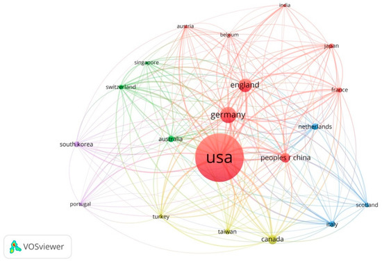 In addition to the co-occurrence analysis, bibliographic coupling analysis of countries and organizations was conducted to detect the leading most organizations and countries that have worked on research in the field. Co-citation analysis was also utilized to identify the most prominent journals and publications and demonstrate their relationships. The output of each of these analyses is a graph network of nodes and links, where larger nodes and thicker links indicate the higher importance of those components. The maps generated by VOSviewer are based on the modularity-based clustering method that includes nodes and links. The node sizes demonstrate the frequency of the considerations, and the thickness of the links displays the strength of the connections between the nodes. Additionally, closely linked nodes form clusters that, for instance, in the case of term co-occurrence analysis, indicate thematic clusters.